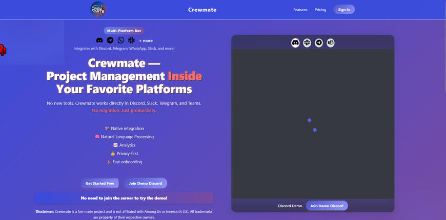 A deployed monorepo project consisting of a Discord bot and a React frontend. A "twist" at productivity apps by integrating directly into comms.Submitted to the FEU CpEO Create & Conquer Hackathon in 2025.Skills: Discord.py, React